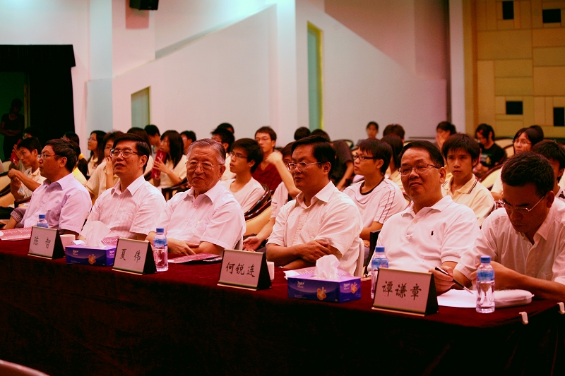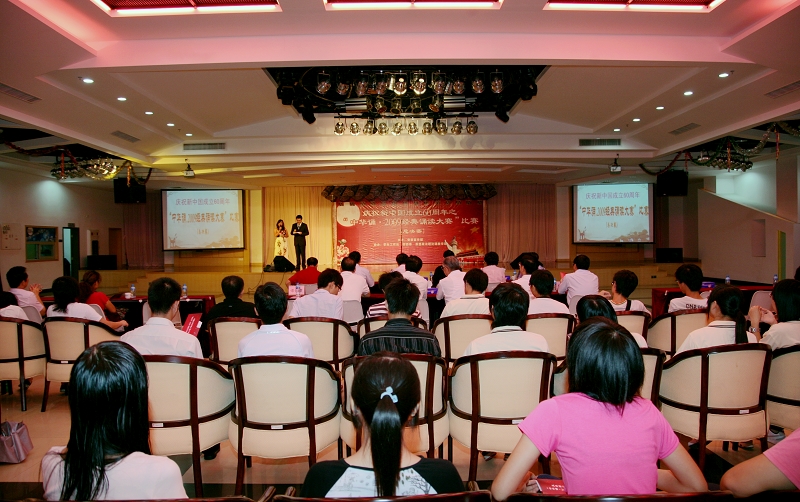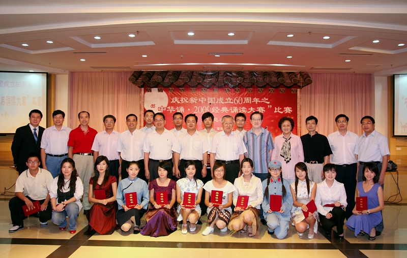 在祖国第60个生日来临之际,由taptap党委宣传部主办,学生处、校团委、思想政治理论课教学部协办的“中华诵·2009经典诵读大赛”总决赛于9月28日在行政楼九楼教工活动中心隆重举行。校领导夏伟、陈智、何锐连、邹时智、陈粟宋、谭谦章和师生代表观看了大赛。暨南大学博士生导师、语言艺术研究室主任伍威,原广东省艺术研究所长、国家一级编剧吴维庆,戏剧家、国家一级导演王佳纳担任大赛评委。taptap陈建华、訾文良、强金国老师担任素质问答环节评委。