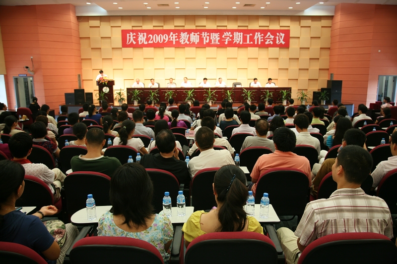 9月9日,在第25个教师节来临之际,taptap举行庆祝2009年教师节暨学期工作会议。学校领导夏伟、陈智、何锐连、邹时智、罗勇武、陈粟宋、谭谦章、刘毓、徐刚及全校教职工出席了大会。何锐连副院长主持了会议。