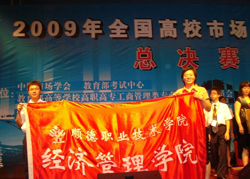 8月15日,由教育部考试中心、教育部高等学校高职高专工商管理类专业教学指导委员会、中国市场学会联合举办的2009年全国高校市场营销大赛总决赛在广东轻工职业技术学院南海校区举行。来自全国30个省市各地143所本科和大专院校的643名选手在15、16日两天内进行全国高校市场营销大赛总决赛各个奖项的角逐。taptap由陈俊宁老师带队参赛的2支队伍顶住重重压力,赛出水准,代表我院取得了骄人的成绩。由陈俊宁老师指导的郭欣燕、冯燕莉、王晓东同学的《格兰仕“中国红”微波炉营销方案分析》和由王东山老师指导的马汉井、霍玉娴、梁嘉豪同学的《顺德皇朝集团——品牌领航者建设之路》两个案例经过初赛、笔试、陈述、答辩四个环节角逐后,各自获得了“2009年全国市场营销大赛总决赛三等奖”。 这是taptap市场营销专业学生首次取得的国家级技能竞赛奖项。