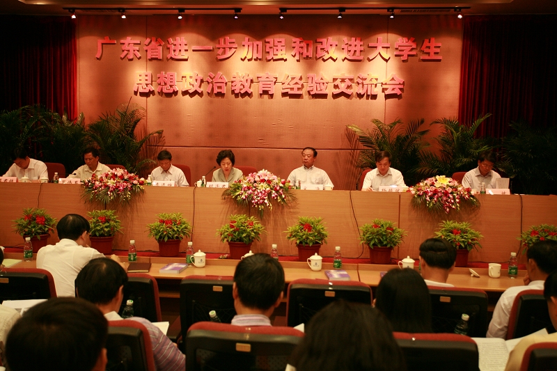 省委常委、组织部长胡泽君在讲话中指出,高校要从“培养什么人、如何培养人”的战略高度,强化爱国主义教育、理想信念教育、思想道德教育和全面素质教育;要进一步充分认识加强和改进我省大学生思想政治教育的责任感和使命感,坚持以人为本的理念,尊重人,关怀人,促进大学生成长为高素质人才;她强调,各高校要紧紧围绕实施《珠江三角洲地区改革发展规划纲要》,坚持“育人为本、德育为先”,以提高大学生思想道德素质为目标,科学谋划大学生思想政治教育,先行先试,力争在学校、社会、家庭相结合的全员、全过程、全方位育人格局上实现新突破,以主动适应广东建设探索科学发展模式的试验区和深化改革开放的先行地的要求。