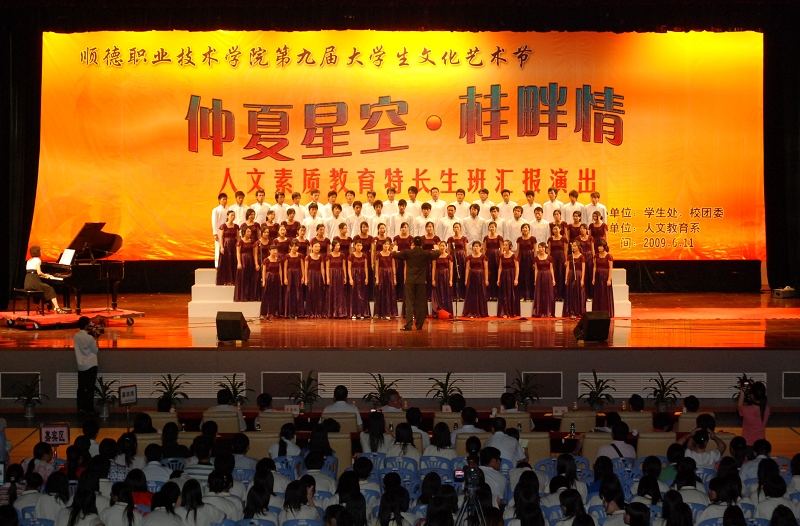 6月11日晚,由学生处、校团委和人文教育系共同举办的“仲夏星空·桂畔情”人文素质教育特长生班文艺汇演在学院梁銶琚礼堂举行。顺德老年大学佘炜校长、taptap陈智院长、何锐连副院长、纪委谭谦章书记等领导和来自各系(院)的2000多名师生观看了演出。