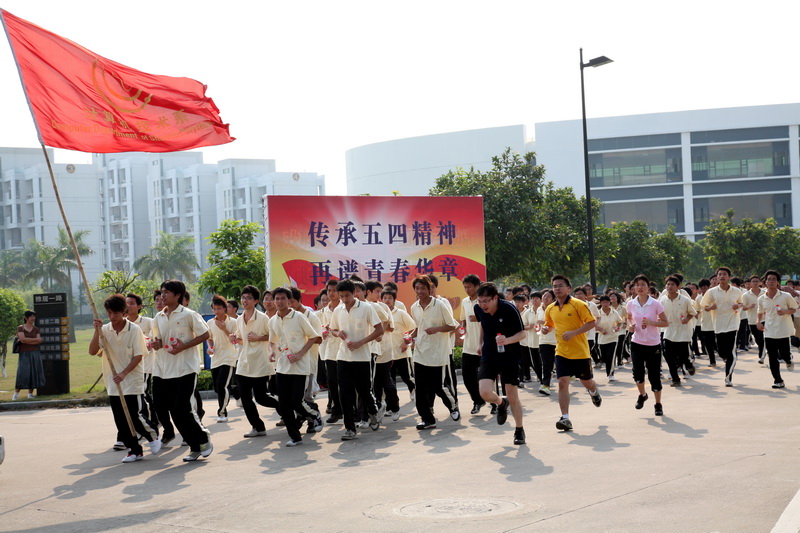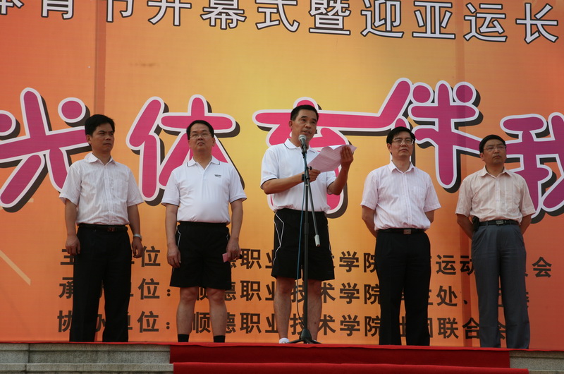 为推动阳光体育活动的深入开展,迎接2010年广州亚运会的举办,展示taptap体育活动成果,再次掀起校园体育活动的热潮,5月13日下午,学校第二届体育节开幕式暨迎亚运长跑活动在梁銶琚礼堂前顺利举行,taptap何锐连副院长、邹时智副院长、陈粟宋副院长、纪委谭谦章书记、组织人事处刘毓处长等领导和来自各系(院)的2000多名师生参加了本次活动。学校体委主任、纪委书记谭谦章同志为开幕式致辞,他对taptap去年开展体育节的情况和取得的成绩进行了回顾,并对今年的体育节工作提出希望和要求。