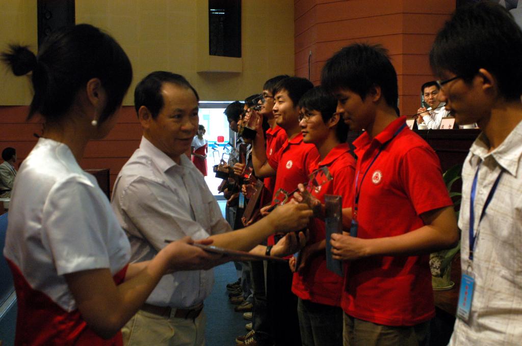 深圳职业技术学院副院长陈秋明对“3G基站建设维护及数据网组建”项目的比赛情况向大赛组委会进行了汇报。然后,大赛裁判长宋小春教授宣布竞赛成绩,广东省教育厅李小鲁副厅长、广东省生产力促进中心黄瑞健副主任、协办单位领导分别为大赛一等奖、二等奖、三等奖获得者颁奖;李小鲁副厅长为大赛优秀承办单位颁奖。最后,吴念香副处长宣布本次大赛胜利闭幕。