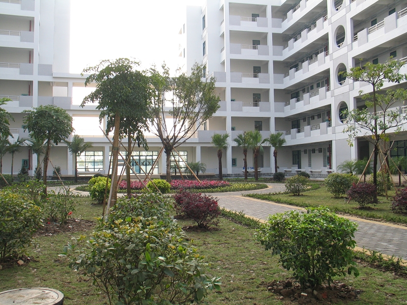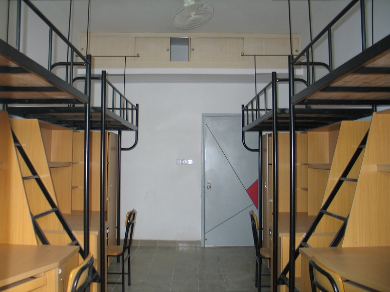 新建成的学生宿舍共有两座宿舍楼,占地面积约14043平方米,楼高7层,建筑面积12866平方米。共建有111个单元,271个房间,每单元配有小客厅、房、洗漱间和卫生间,可供1016名学生入住。宿舍宽敞明亮,各类附属用房及设施配置有:学生活动室、辅导员宿舍、各楼层开水供应点、洗衣房、中庭绿化休憩区、太阳能热泵热水系统、弱电网络系统等。室内客厅、房统一配置家具、行李架、预留空调安装位置等。