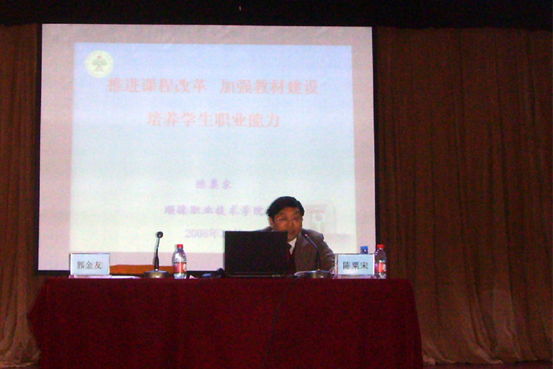 针对佳木斯职教集团(佳木斯职业学院、技师学院)提出的一些实际问题,陈粟宋副院长做了题为“推进课程改革,加强教材建设,培养学生职业能力”的主题报告,具体阐述了“高职课程新标准”、“基于工作过程的课程建设”、“特色教材编写”、“主要建设工作及成效”等重要问题,全面推介我院近年来所开展的一系列工作。讲座观点新颖、思路清晰、资料翔实、操作性强,注重了标准化和特色化,引起了强烈的反响,得到了与会领导、教师的高度评价。学术交流期间,人文教育系陈建华主任就“高职院校的人文素质教育”、教务处张斌副处长就“院系两级管理”、外语系陈春艳书记就“大学生思想工作及党团建设”等问题,也分别做了专题讲座,与两校教师开展了热烈的互动,收到了很好的效果。