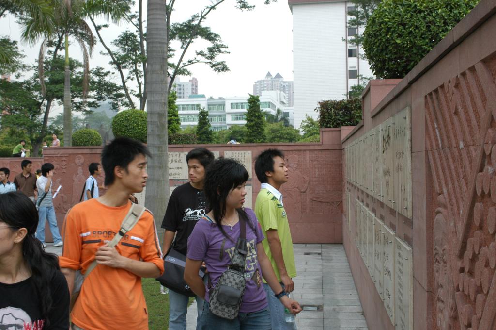 在华南师范大学,记者团一行向一手创建南方大学(华南师范大学前身)的叶剑英元帅致敬,在校园文化广场上,看到孔子、颜回、子路三人合雕,不少同学随口吟出“三人行,必有我师”之句,为庆祝华南师范大学70华诞而建、收录有140多名院士赠词的“科学之光”文化长廊吸引了大家,王选、钟南山、亨利·韦伯等院士的题词让大家瞩目良久。作为名牌大学,华师和暨大浓厚的文化氛围,博大精深的文化底蕴,儒雅的人文景观,既陶冶了我们的道德情操,熏陶文化资质修养,同时也让我们大开眼界,深受教育。此外,活动中还攀登了白云山,锻炼了身心,磨炼了同学意志。
