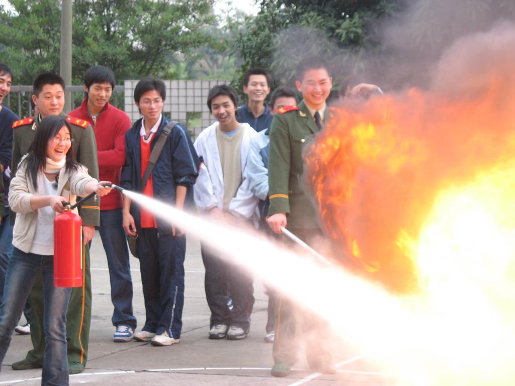 在消防基地,同学们听消防人员介绍了各种不同的消防器材装备、建筑消防设施、消防知识漫画、近年来火灾图片等内容的展示,使同学们对“水枪”、“水带”、“消防车”、“破拆工具”等消防器材装备及各种消防常识加深了认识和了解。最后同学们观看了消防官兵表演两盘水带连接、高空逃生等消防技能,还学习了消防栓、灭火器、等消防器材的使用,掌握了基本的消防技能。