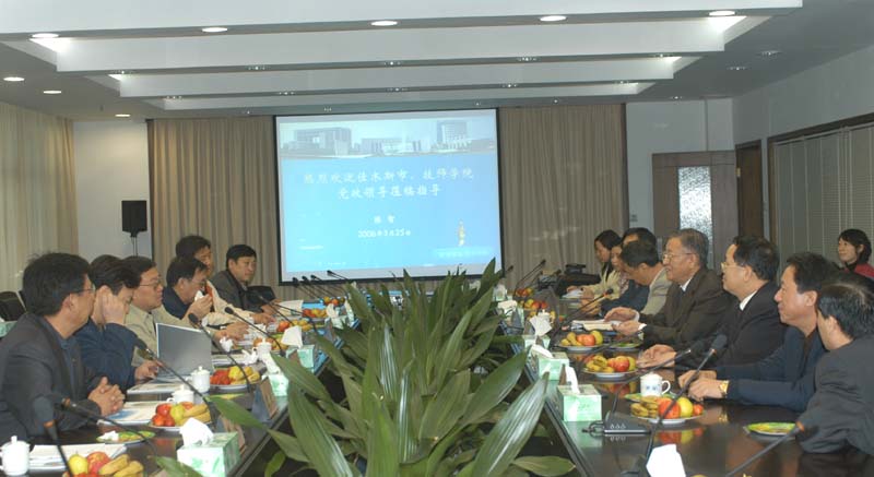3月24日,在细雨蒙蒙中,由佳木斯市委常委、常务副市长张邦升率领的佳木斯赴广东职业教育考察团来到我院进行访问。我院院长陈智、副院长何锐连、罗勇武、陈礼、纪委书记谭谦章、教务处处长陈粟宋、科技处副处长刘晓顺、生产力促进中心副主任、华南家电研究院副院长欧阳志强、院办副主任余绍霞等热情接待了来宾。