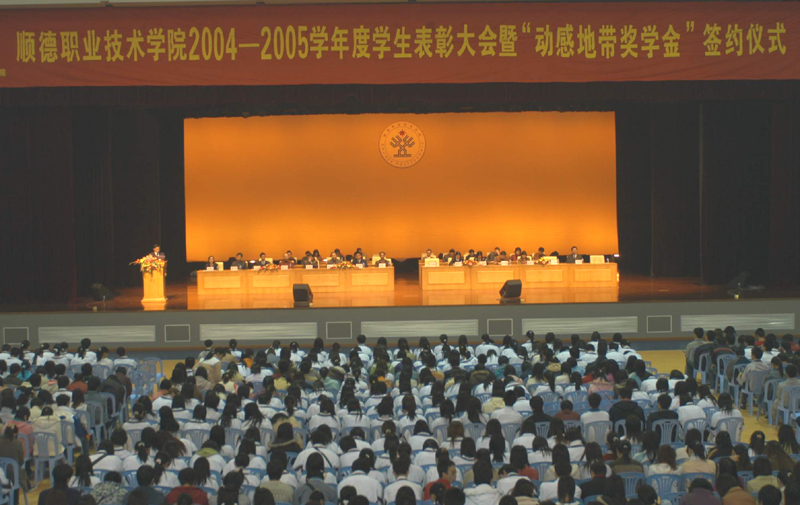 12月28日,我院在梁銶琚堂举行了2004-2005学年度学生表彰大会暨“动感地带奖学金”签约仪式。副院长罗勇武,纪委书记谭谦章,各系主任、书记,顺德移动服务营销中心总经理罗德锋先生、副总经理胡丽燕小姐及我院2800多名学生参加了表彰大会。