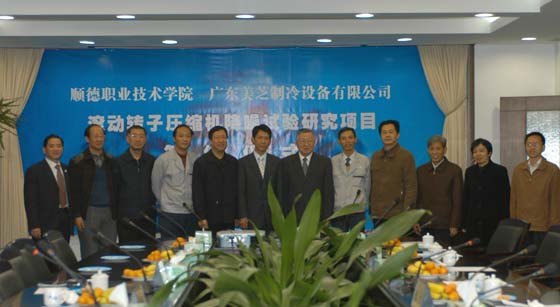 12月7日,我院与广东美芝制冷设备有限公司“滚动转子压缩机降噪试验研究”项目的签约仪式在我院行政楼会议室举行。广东美芝制冷设备有限公司总裁蔡其武、经营管理部部长喻继江、技术部副总监郭宏,技术部产品开发科经理杨泾涛,我院院长陈智、副院长陈礼、办公室副主任余绍霞、科技处副处长刘晓顺,机电系副主任陈学锋,机电系书记李玉春,邱家修副教授及制冷专业课题组部分人员出席了签约仪式。
