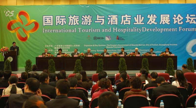 12月16日,由顺德区人民政府和我院主办,中国夏威夷旅游管理学院、美国饭店协会教育学院协办的“国际旅游与酒店业发展论坛”在我院学术交流中心一楼报告厅隆重举行。国际知名的旅游与酒店管理教育家、夏威夷大学旅游学院院长朱卓任教授,前国务院港澳办主任鲁平先生,世界旅游组织亚太区主任徐京先生,锦江集团总裁Mr.Christopher Bachran,美国及加拿大著名电视节目主持人甄文达先生,香港理工大学酒店及旅游业管理学院张邱汉琴博士,夏威夷商会会长蔡永强,广东省旅游局副局长杨荣森先生,顺德区人民政府区长周天明,顺德区政协主席杨肖英,顺德人民政府副区长潘志文,我院院长陈智,副院长何锐连,纪委书记谭谦章等出席了论坛,论坛由陈礼副院长主持。