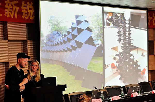 11月11日上午,芬兰新锐设计工作坊开幕式暨“在现场-空间纺织品”设计报告会在taptap11栋5号报告厅隆重举行。设计学院负责人、学生共约300人参加了此次会议。在会上,芬兰的几位设计师们介绍了之前与德国、澳洲等国家学生共同开展的工作坊项目,并讲解了本次在中国工作坊的工作意向、设计思路和工作任务等。