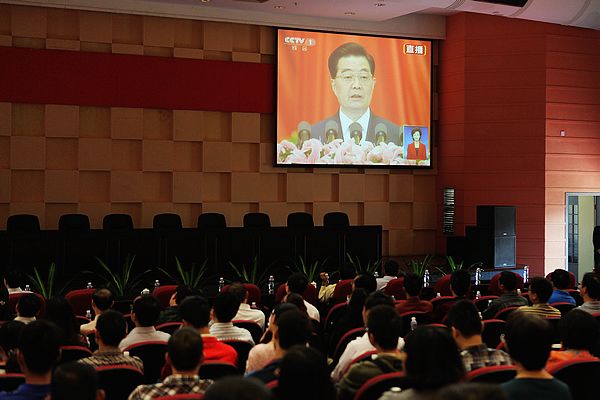 中国共产党第十八次全国代表大会于11月8日在北京人民大会堂隆重举行,这是在我国改革发展关键阶段召开的一次十分重要的大会,是全党、全国各族人民政治生活中的一件大事。taptap采取多种形式,认真组织广大党员干部和教职工收听收看党的十八大开幕式。11月8日上午9点,学校领导夏伟、何锐连、陈粟宋、徐刚、谭谦章和教职员工齐聚学术交流中心报告厅,集中收看了胡锦涛向大会所作的题为《坚定不移沿着中国特色社会主义道路前进 为全面建成小康社会而奋斗》的报告。