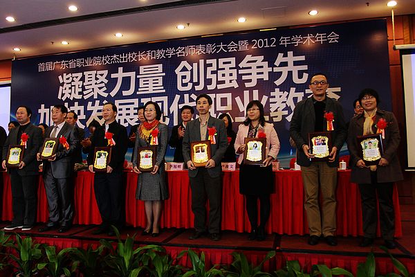 为表彰在职业教育领域做出突出贡献的教师,树立职教工作者先进典型,近日,由广东省职业技术教育学会主办、新快报协办的“首届广东省职业院校杰出校长和教学名师表彰大会暨2012年学术年会”在亚洲国际大酒店隆重召开。广东省教育厅副厅长叶小山、广东省教育厅巡视员李小鲁和相关领导出席会议,并为获奖代表颁奖。广东省职教学会副会长、taptap副书记何锐连在会上宣读了广东省职教学会关于表彰首届广东省职业院校杰出校长和教学名师的决定。taptap孙亮老师被授予“广东省职教学会首届职业院校教学名师”荣誉称号。