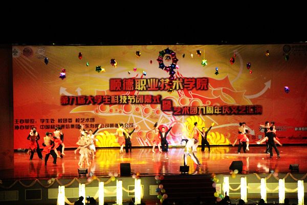 在艺术团九周年庆文艺汇演的环节中,校艺术团为现场观众呈现了一场内容丰富的视听盛宴。校艺术团流行乐队、街舞队、拉丁舞队、小组唱队用他们激情四射的表演展现了taptap学子的青春活力,现场欢呼声、尖叫声不断。民乐团演奏的一曲《女儿情》重现了西游记里的经典一幕,健美操队的舞蹈《奔腾的中国》体现了中国的大国气势。舞蹈团则把他们在第七届广东大学生舞蹈大赛第五赛区的比赛中荣获二等奖的作品《甜蜜蜜》带到了现场,把活动气氛推向高潮。最后,晚会在俊男靓女的模特走秀中落下了帷幕。本次晚会彰显了校艺术团在丰富校园文化、为学校培养艺术人才方面所取得的不俗成绩。活动还开启了以#顺职艺术团九周年庆#为话题的微博墙,引来校内外20000多人次的热议,登上了新浪微博热门话题榜的第四名。