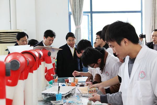 验收组参观了taptap校园、设计学院毕业生设计展、应用技术化工系,夏伟校长向验收组汇报了taptap建设、改革与发展相关情况。