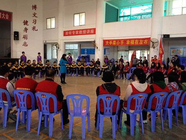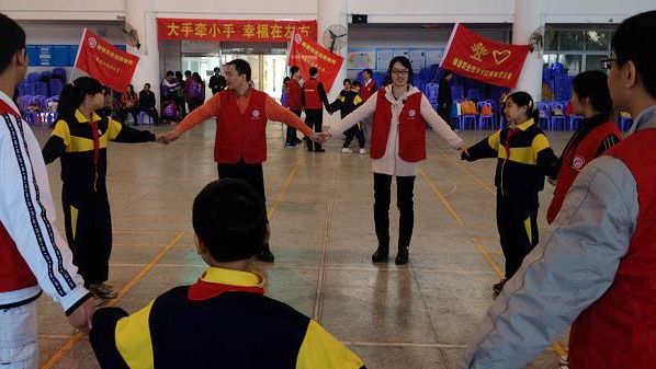1月30日上午,由区委组织部和校团委联合开展的“大手牵小手,幸福在左右——关爱外来务工子女和留守少年儿童志愿服务”活动在容桂幸福小学进行。区直属机关党工委党员和taptap师生共50多名志愿者与20多名外来务工子女和留守少年儿童一起玩游戏,共度欢乐时光。游戏过后,志愿者为20名小朋友送上他们精心准备的爱心礼物,并祝小朋友们新年快乐、学业有成。小朋友们对志愿者的爱心表示了感谢,来自湖北的外来务工人员子女张梓旸说,学校放寒假后在家里除了写作业,就是和外公出去骑单车,现在能参加这些活动让他感到寒假生活真是丰富多彩。