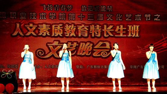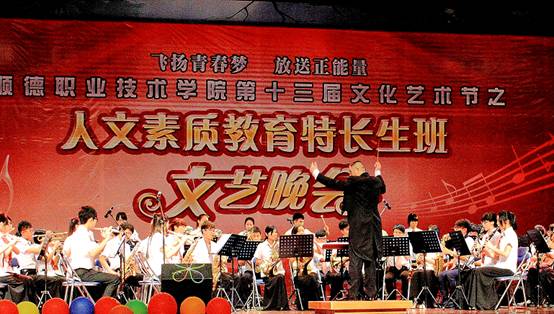 学校领导十分重视校园文化建设。夏伟校长在听取人文素质教育特长生班近期工作汇报后,指示要认真办好特长生班的教育,使之成为一支为推动校园文化建设的主力军,并预祝晚会取得圆满成功。学校党委何锐连副书记、刘毓副校长亲临现场观看晚会。顺德老年大学佘炜校长,学校党委宣传部、学生处、督导室及人文教育系相关负责人出席了晚会。