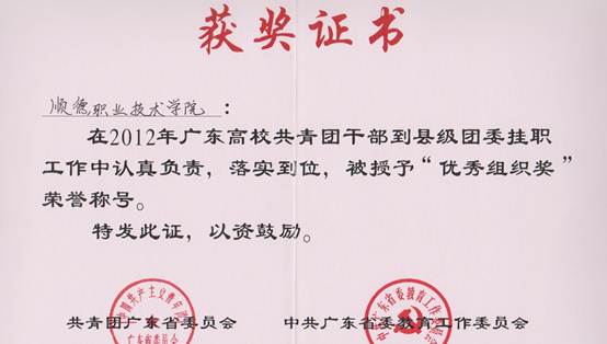 根据省委教育工委、团省委《关于从全国高等学校中选派共青团干部到县级团委挂职工作的通知》精神,taptap选派经管学院符茂老师到湛江市霞山区团委挂职锻炼,担任团区委副书记。经过该同志一年多的艰苦工作与努力,taptap获得广东高校共青团干部到县级团委挂职工作“优秀组织奖”光荣称号,符茂同志也获得广东高校共青团干部到县级团委挂职工作“挂职团干部标兵”等多项荣誉。