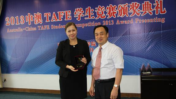 9月11日下午,新南威尔士州政府南中国区及香港地区高级代表Cher Jones女士莅临taptap,为taptap在2013年中澳TAFE学生竞赛中获奖的学生、指导教师颁发奖牌和证书。taptap党委副书记齐振彪及TAFE项目任课教师、获奖学生等出席了颁奖典礼。