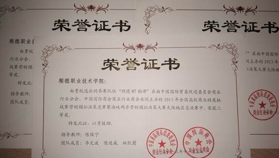 大赛以“营销赢家”软件为平台,模拟企业经营系统,采用网络对抗形式,通过分区预赛选拔出42支代表队。面对众多强手,由经管学院李文波、陈连威、林凯茵组建的“顺德MT韵律”队(指导老师:陈俊宁),沉着机智、团结合作,战胜了多所其他高校的强劲对手,最终获得总决赛二等奖的好成绩。
