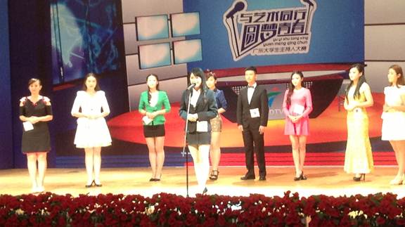 12月7日、8日晚,广东省第八届大学生文化艺术节之“与艺术同行,圆梦青春”主持人大赛复赛、决赛在华南师范大学大学城校区音乐厅举行。全省共有各高校推荐的130名选手报名参加此次大赛,通过初赛、统一培训和复赛,最终选拔出来自中山大学、华南理工大学、暨南大学、华南师范大学等高校的20名优秀选手晋级决赛。taptap选手,来自经济管理学院2012级的苏映红同学脱颖而出,成功闯入决赛,与众多高手同台过招,最终获得三等奖。这是taptap在参加该项赛事以来所获得的最好成绩。