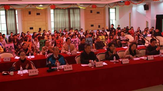 12月27日下午,taptap一年一度的“中华诵·2013经典诵读”大赛在行政楼九楼教工活动中心举办。大赛邀请第十九届中国戏剧“梅花奖”获得者、著名表演艺术家、国家一级演员高侠,广东电视台报刊社总编辑、一级作家宋晓琪,广东话剧院国家一级演员、热播剧(外来媳妇本地郎)中牛哥扮演者李卫东,taptap陈建华教授、强金国副教授、吴舒婷老师作为大赛评委。taptap领导夏伟、刘毓、齐振彪、陈粟宋、谭谦章和师生代表近300人观看了比赛。