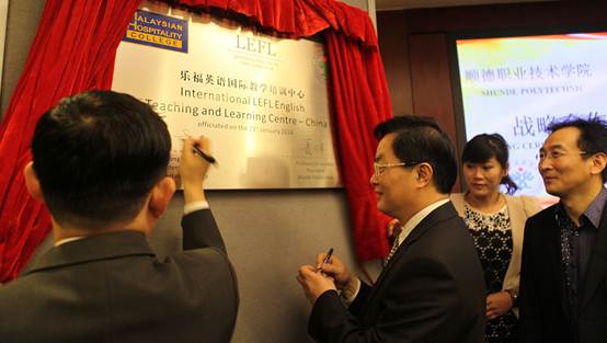 夏伟校长和黄光耀院长等共同为乐福(LEFL)英语国际教学培训中心揭牌。