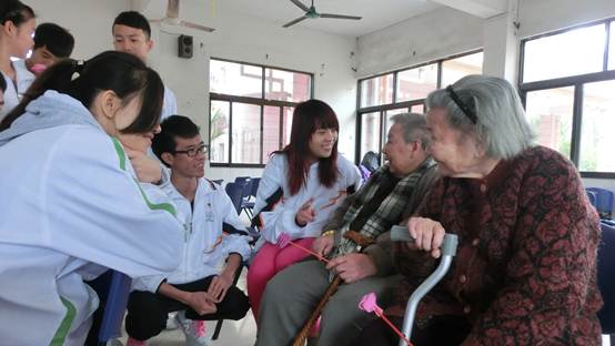 踏进养老院,志愿者们分组与不同楼层的老人们进行交流,了解他们的生活以及家庭情况,帮助他们打扫卫生。志愿者还为他们送上了精彩的节目,使原本安静的养老院一下子沸腾起来,老人们掌声连连,笑声阵阵。