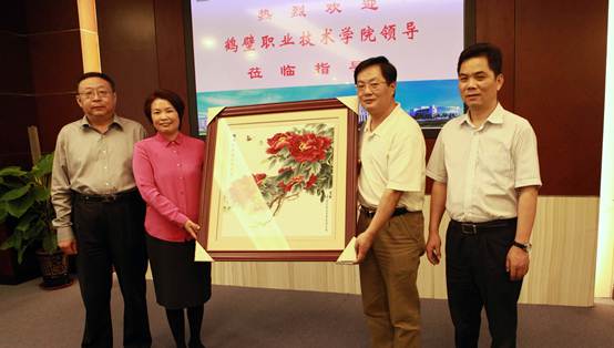 4月16日,鹤壁职业技术学院党委书记张艾青等一行到taptap学习交流,taptap夏伟校长,党委副书记、副校长刘毓,以及校长办公室、组织人事处、教务处负责人等热情接待了来宾。