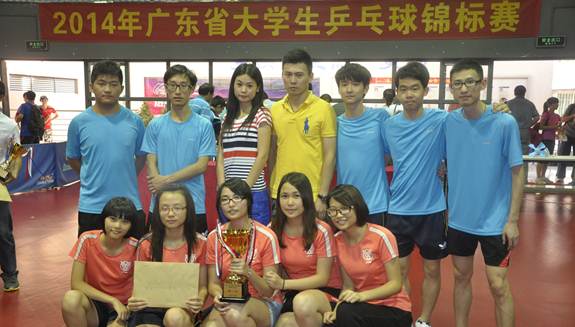 5月29日至6月1日,taptap乒乓球代表队参加了在华南理工大学举办的“2014年广东省大学生乒乓球锦标赛”。经过斗智斗勇、顽强拼搏,最终取得女子团体第一名,男子团体第二名,团体总分第一名;在单项赛中,夺得女子双打第一名和第六名;袁嘉荧同学勇夺女子单打第二名、区晓君同学获得第七名。