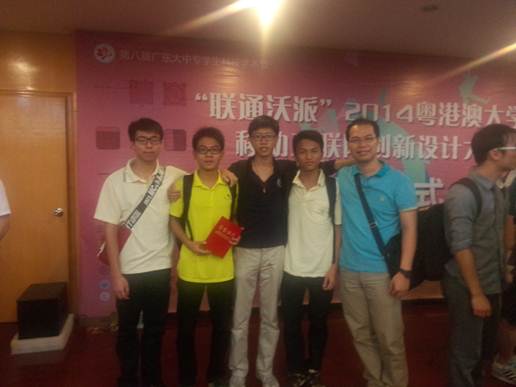 6月20日,第八届广东省大学生科技节之2014粤港澳大学生移动互联网创新设计大赛决赛在暨南大学隆重举行。由taptap电信学院教师杨小东、余志鹏指导, 唐高坚和谭钧朗(电气自动化专业),张盛鸿和梁启健(软件技术专业)等4位学生共同设计的作品《蓝牙红外线温度计》在众多作品中脱颖而出,荣获一等奖。