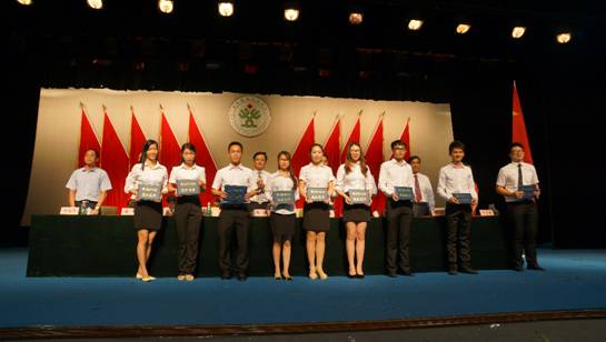 在毕业典礼上,徐刚副校长宣读《关于准予2014届冯显锐等4035名学生毕业的决定》,正式宣告2014届学生圆满完成学业,在主席台就座的学校领导和教学名师为毕业生代表颁发了毕业证书;刘毓副书记、副校长宣读了《关于授予李成安等222名学生2014届“优秀毕业生”称号的决定》,肯定了毕业生的优秀表现,在主席台就座的学校领导和教学名师为优秀毕业生代表颁发了荣誉证书。
