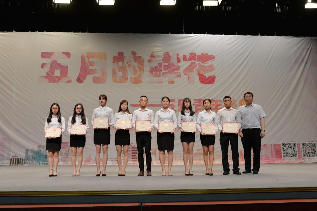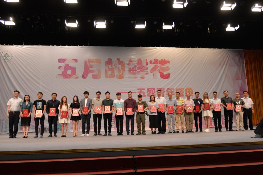 盛典上还举行了隆重的表彰仪式,为“优秀团员”代表、“优秀团干”代表、“十佳团员”、“十佳团干”、“十佳团支部书记”、“五四红旗团支部” 、“优秀学生会”以及“五四红旗团委”的获奖集体及个人颁发了证书及牌匾。