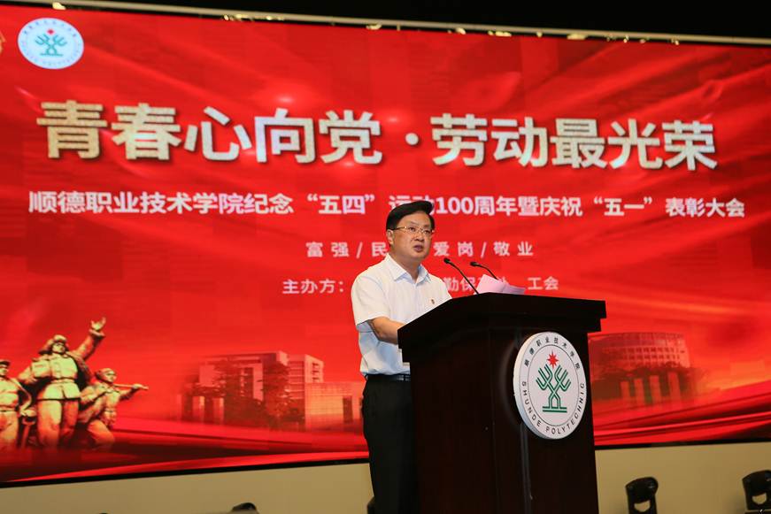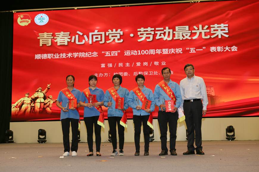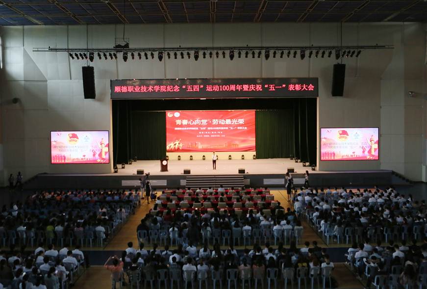 5月6日下午,taptap在梁銶琚堂隆重举行“青春心向党·劳动最光荣”纪念“五四”运动100周年暨庆祝“五一”表彰大会。顺德团区委副书记曾浩宇,学校领导夏伟、刘毓、谭谦章、陈粟宋、黄健光,学校党委委员、学工部、校团委、工会、后勤保卫处、各二级学院、顺大公司、鼎瀛公司主要负责人,校团委、各二级学院团学老师,后勤工作者代表以及青年团员共计1500多人参加了活动。