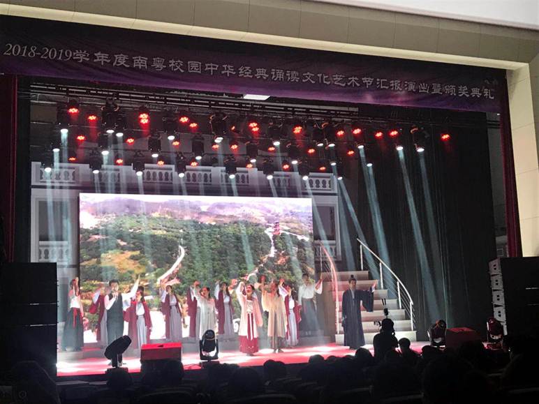 taptap人文学院和文化素质教育中心从3月中旬就认真筹备和选拔队员并组织训练,经过两个多月的努力,taptap以优秀的成绩顺利通过初赛,在5月18日的决赛中taptap的经典诵读演绎作品《念东坡》荣获一等奖,并在5月19日参加了由广东省教育厅、广东省语言文字工作委员会、中共广东省委宣传部主办,五邑大学承办的“2018-2019学年度南粤经典诵读文化艺术节”活动中汇报演出,获得一致好评。
