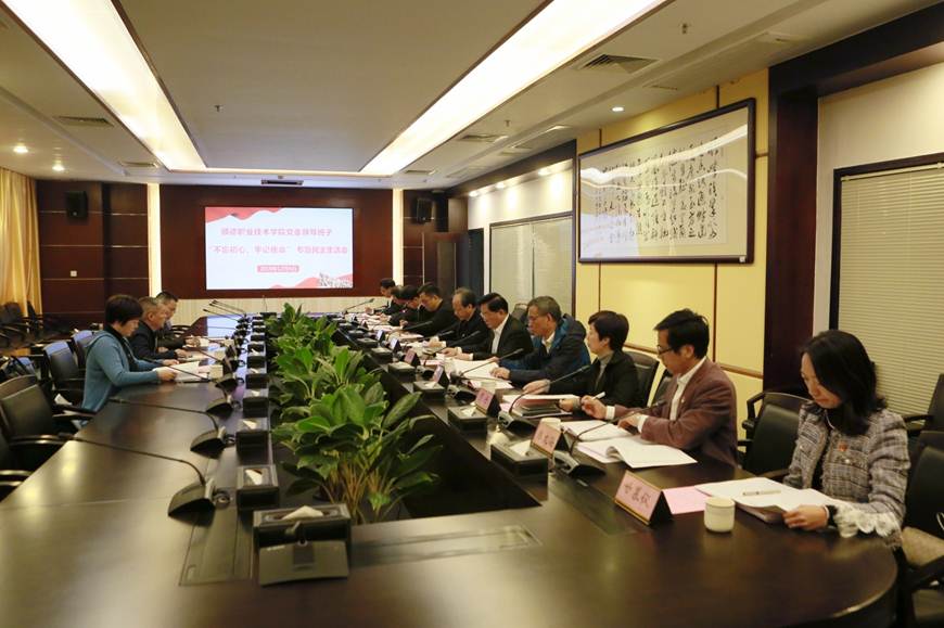 接着,刘毓代表党委领导班子作了《顺德职业技术学院党委领导班子剖析材料》。班子剖析检查材料紧扣会议主题,梳理提炼出谋划要“早”、学习要“真”、调研要“深”、整改要“实”四个方面的学习教育收获体会,并从理论学习有收获、思想政治受洗礼、干事创业敢担当、为民服务解难题、清正廉洁作表率等五个方面认真查摆班子存在的差距和不足,并从理论学习、政治站位、进取精神、宗旨意识、廉洁自律等方面进行深刻的原因剖析,提出了五大方面的整改措施,并明确了整改目标和整改期限。