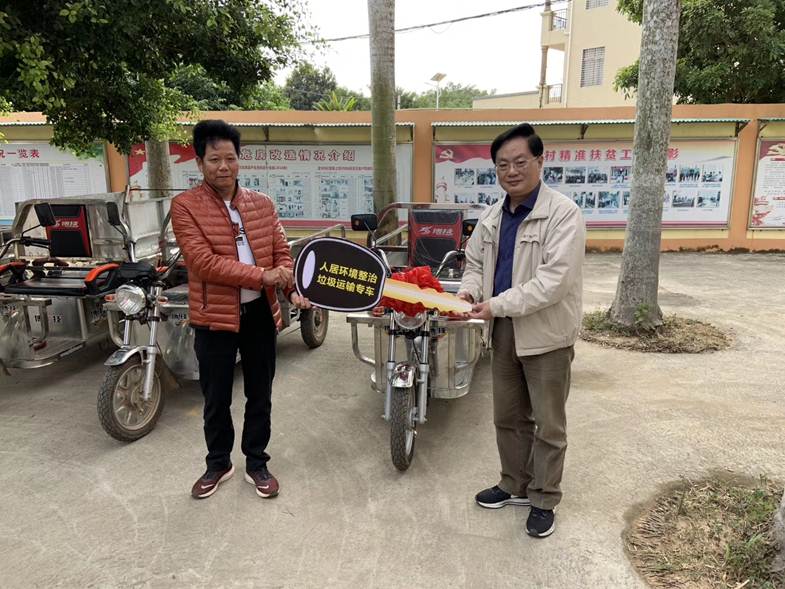 学校向上郎村捐赠7辆垃圾运输车用于当地环境治理