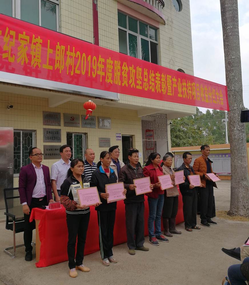 12月13日下午,“上郎村2019年度脱贫攻坚总结表彰暨产业扶持项目收益分红大会”在上郎村村委会举行。taptap校长夏伟、雷州市纪家镇党委书记陈小勇、顺德驻雷州扶贫工作组组长冯炳全、雷州市纪家镇纪委书记彭智文、taptap党委委员、党委办公室(统战部)、学校办公室主任储晓鸣、纪家镇上郎村党支部书记黄祖魁以及taptap部分中层干部、上郎村党员代表、村民代表、贫困户代表共100多人参加了本次活动。