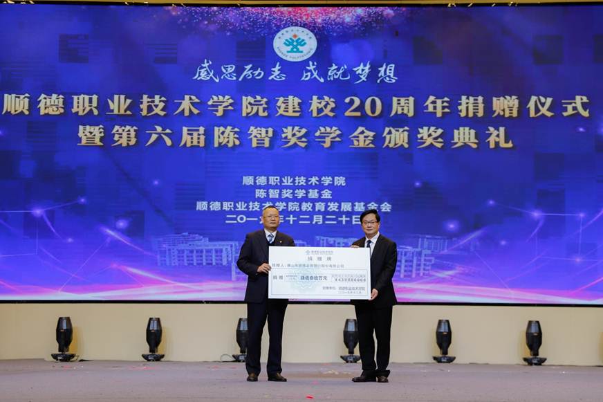 最后,顺德区教育局副局长罗劲柏对企业家们对学校的鼎力支持、高度关注表示感谢。他说,正是企业家们对教育事业的无私大爱,无私奉献与期望,促成了学校高起点的建设和高水平的发展,是企业家和社会各界人士对教育的远见与胸怀成就了学校的建设,这种“万众一心强教育,百年树人兴顺德”的共同愿望,推动着学校向前推进发展。顺德职业技术学院作为顺德职业教育的龙头,在被纳入建设中国特色高水平高等职业院校和高水平专业建设计划的契机下,学校的未来有着更多的机遇,陈智奖学基金将在学校办学与人才培养方面发挥更大的作用。