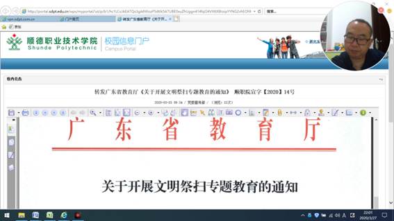 为贯彻落实国家和省市关于清明祭扫期间新冠肺炎疫情防控工作的要求,外语外贸学院根据学校安排部署,于3月27-31日期间组织全体学生召开了“疫情防控期间,如何过一个有意义的清明”主题网络班会,1400余名学生参加会议,全体班主任主持会议。