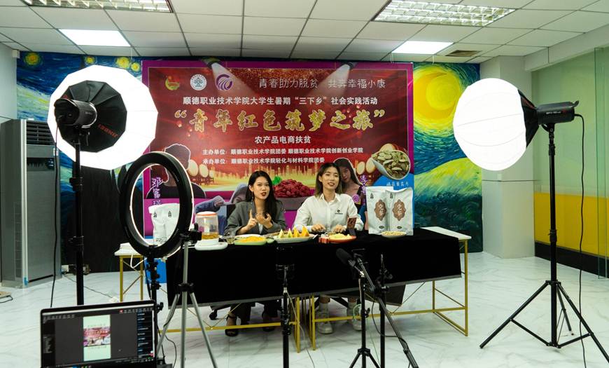 为深入学习贯彻党的十九届四中全会精神,落实习近平总书记鼓励青年用创新创业成果服务乡村振兴战略、助力精准扶贫的政策。2020年8月6日-8日由顺德职业技术学院团委和创新创业学院主办,轻化与材料学院团委承办主题为“青春助力脱贫 共奔幸福小康”2020年大学生志愿者暑期文化科技卫生“三下乡”社会实践活动之“青年红色筑梦之旅”电商直播活动。