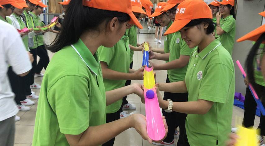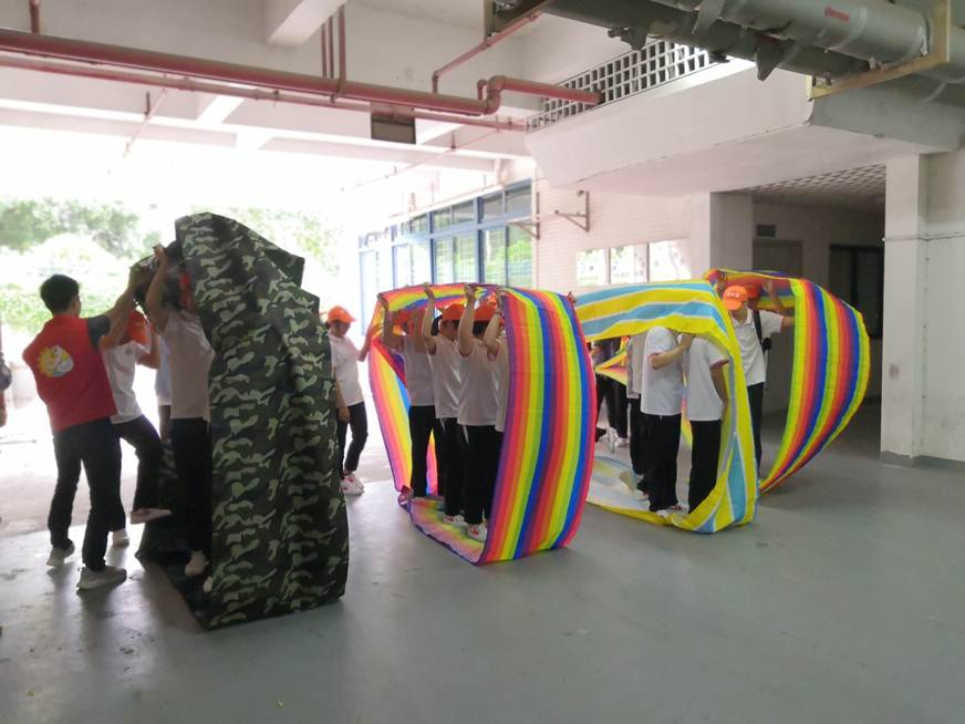 本次活动主要由团体游戏和分享总结两个部分组成。团体游戏包括无敌风火轮、不倒森林、珠行万里、击鼓传花等8个项目。新生们全身心投入进团辅活动中,非常积极踊跃。各小组的同学都拼尽全力,希望能够取得好成绩,欢呼声和加油声此起彼伏。