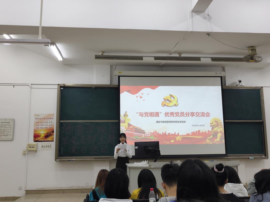 为进一步增强入党申请人员、入党积极分子和发展对象对党的认识,端正入党动机,坚定理想信念,并发挥党员先锋模范作用,酒店与旅游管理学院学生党支部于12月9日晚在教学楼1栋200开展优秀党员交流分享会活动。