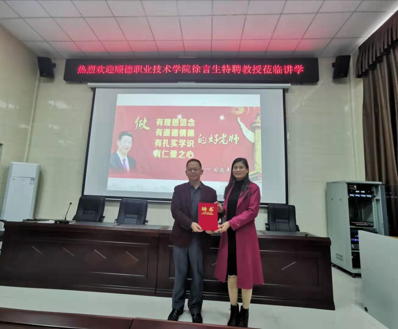 12月9日下午,徐言生教授及团队一行5人来到罗定职院。罗定职院对taptap组织的此次送教上门活动给予了高度重视,副院长莫秋蝉、人事处处长陈银芳等领导对taptap教师团队一行表示热烈欢迎。随后的座谈会上,为进一步加强校际学习交流,罗定职院聘请徐言生教授为特聘教授,同时,徐言生教授名师工作室招收罗定职院两名网络工作室学员,建立常态化研修培养。