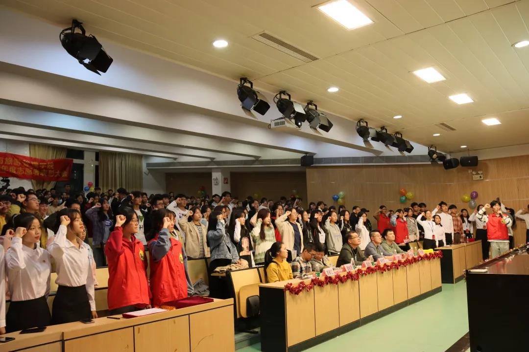 綦恩周总结了酒管学院的志愿活动,自从2008年以来,酒管学子在北京奥运会、上海世博会等大型活动都留下了身影。同时,酒管学子深入疫区、社区,参与抗击疫情,还有志愿服务队积极参与凉山的扶贫工作,以及关爱自闭症儿童和关爱老年人的工作。希望广大学子能通过志愿活动传递爱,奉献自我,回馈社会;通过志愿活动能了解更多的社会现状,更加珍惜今日的幸福生活;希望广大学子能把志愿者精神融入日常学习和实践工作中去。这也正是当代大学生开展志愿服务精神所追求的本质所在。最后学生志愿者进行了宣誓,此次大会树立了榜样,鼓励学子们从自身做起,从点滴做起,积极投身到志愿服务中。