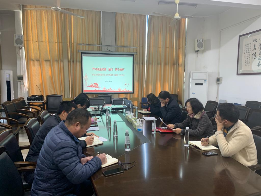 根据《顺德职业技术学院2020年纪律教育月活动方案》相关工作要求,1月12日下午,外语外贸学院党总支在教学楼3栋501会议室召开纪律教育专题民主生活会,校纪委委员、马克思主义学院副院长王志雄、外语外贸学院领导班子、党总支全体委员参加了本次会议。