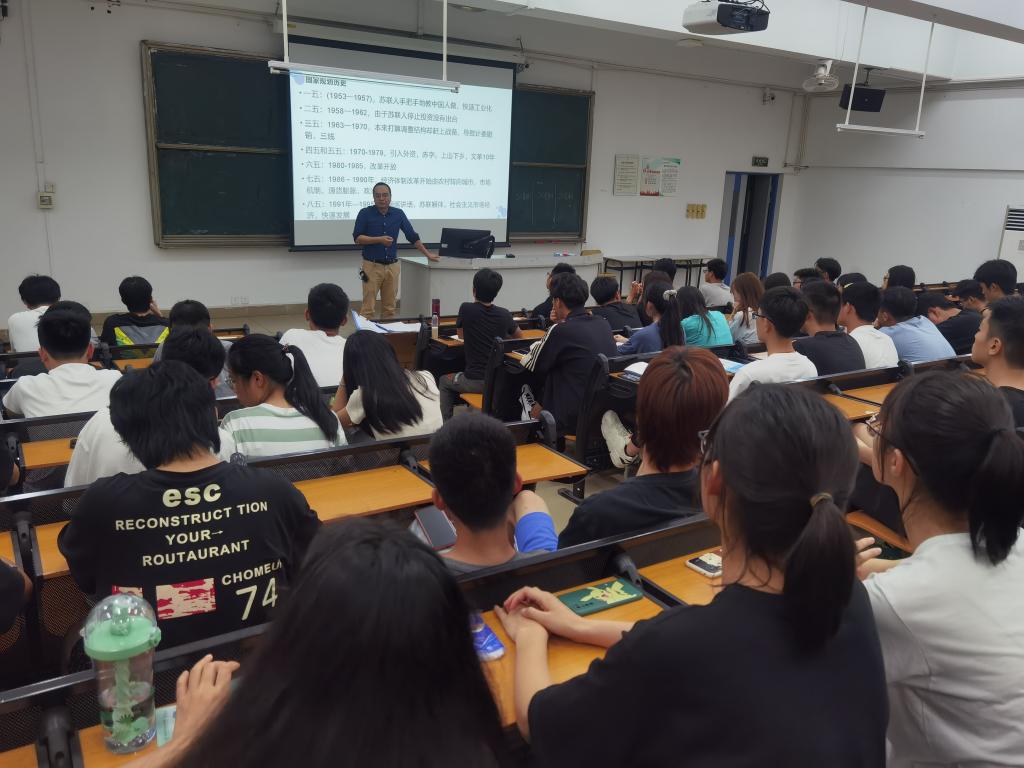 授课中,余华明以“国家规划历史”为题开篇明义,从历次的国家五年计划剖析到最新十四五未来规划方向意义,让同学们具体了解到国家大棋盘规模之宏大,意义之非凡,并深刻的领悟到学习国家历史的重要性。接着余华明对我国十四个五年计划进行了深刻见解分析,并指出中国共产党在其中起到的重要作用,用了很多生动形象的史实及身边的故事来说明,让同学们从党的规划进程中汲取知识、传承精神、勇担责任,深刻认识和学习我国的五年规划历程的重大意义。