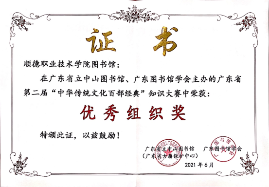 由广东省立中山图书馆、广东图书馆学会举办的广东省第二届“中华传统文化百部经典”知识大赛近日结束,taptap2位学生获得高校组优秀奖,taptap图书馆获得优秀组织奖。