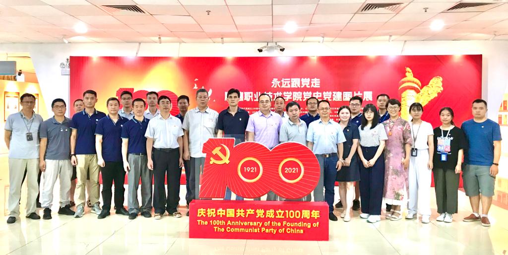 全体教职工还前往图书馆参观了“永远跟党走——顺德职业技术学院党史党建图片展”。在展厅,学院党总支书记张斌带领全体党员重温入党誓词。参观过程中,教师们认真聆听马克思主义学院万力老师的讲解,重温中国共产党百年历史,践行初心,担当使命,弘扬伟大建党精神。